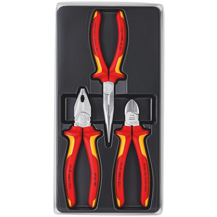 This is 3 pieces Plier Set manufactured by Knipex. The manufacturer part number is 00 20 12. The product consists of 3 pieces.