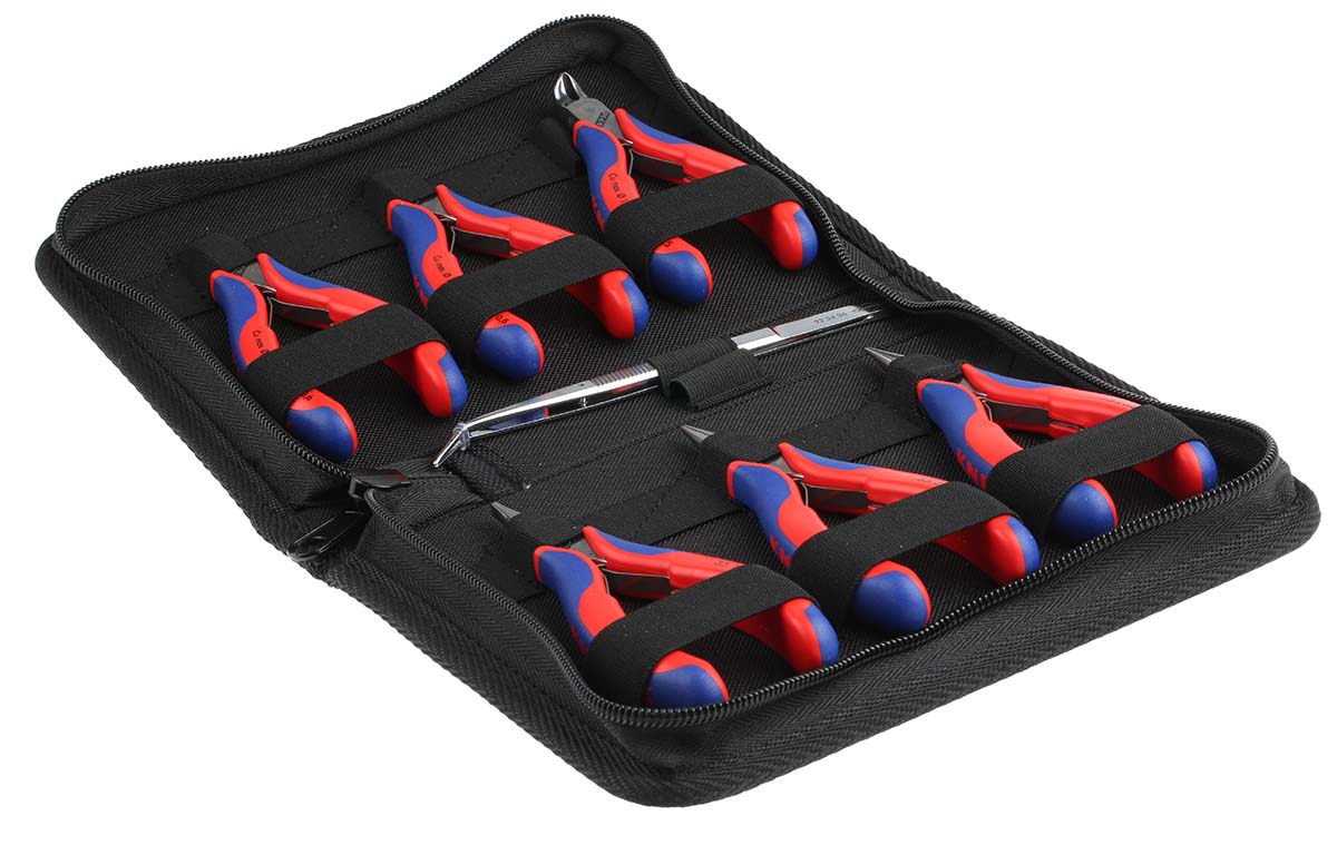 This is 7 pieces Polyester Tool Steel Plier Set manufactured by Knipex. The manufacturer part number is 00 20 16. VDE/1000V Approval Options - no. It has a non sparking nature no . The product is made from highly stable and reliable tool steel. It has an overall length of 240 mm. ESD Safety - no. It is height safe no . The product consists of 6 pieces.
