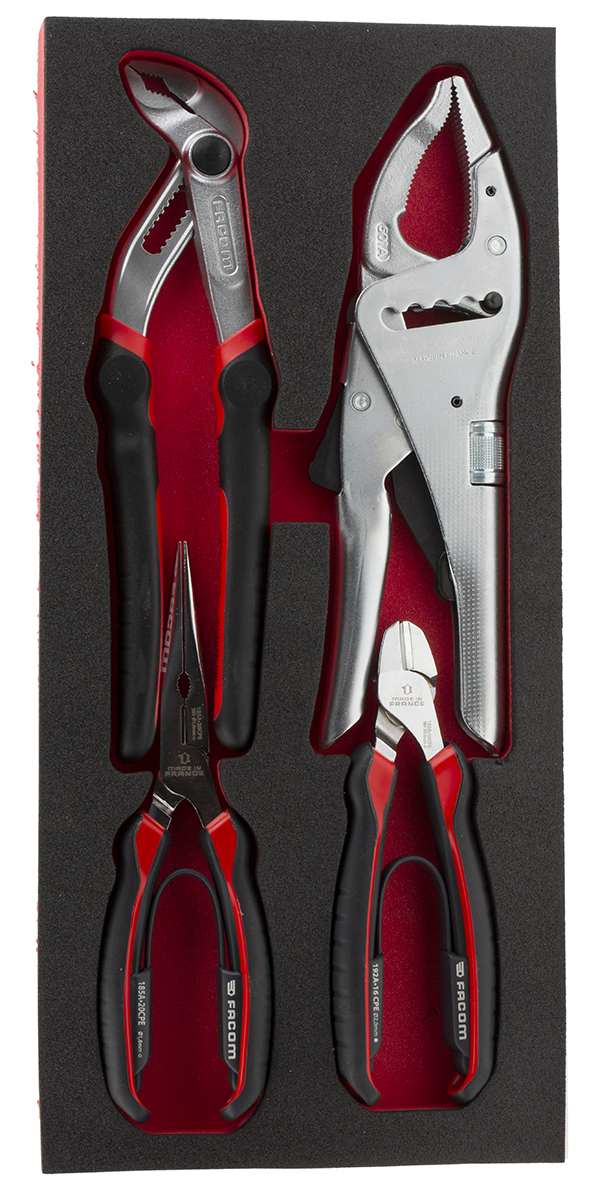 This is FOAM MOD PLIERS CPE manufactured by Facom. The manufacturer part number is MODM.CPEA1PB. VDE/1000V Approval Options - no. It has a non sparking nature no . The product is made from highly stable and reliable chrome vanadium steel. It has a model number modm.cpea1pb. It has an overall length of 440 mm. The product consists of 4 pieces.