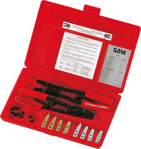 This is Steel Pliers Circlip Pliers manufactured by SAM. The manufacturer part number is C-197. It jaw is about 2.3 mm, 3.2 mm in length . The product has an integral bent, straight tip. The product is made from highly stable and reliable steel. Moreover, it has a plier of circlip pliers type . The product consists of 2 pieces.