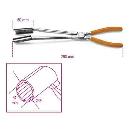 This is Pliers 290 mm Overall Length manufactured by BETA. The manufacturer part number is 1474L. It jaw is about 50mm in length . The product has an integral bent tip. It has a non sparking nature no . It has about 14 mm size circlip range . Moreover, it has a plier of spark plug pliers type . It has an overall length of 290 mm. The product consists of 1 pieces.