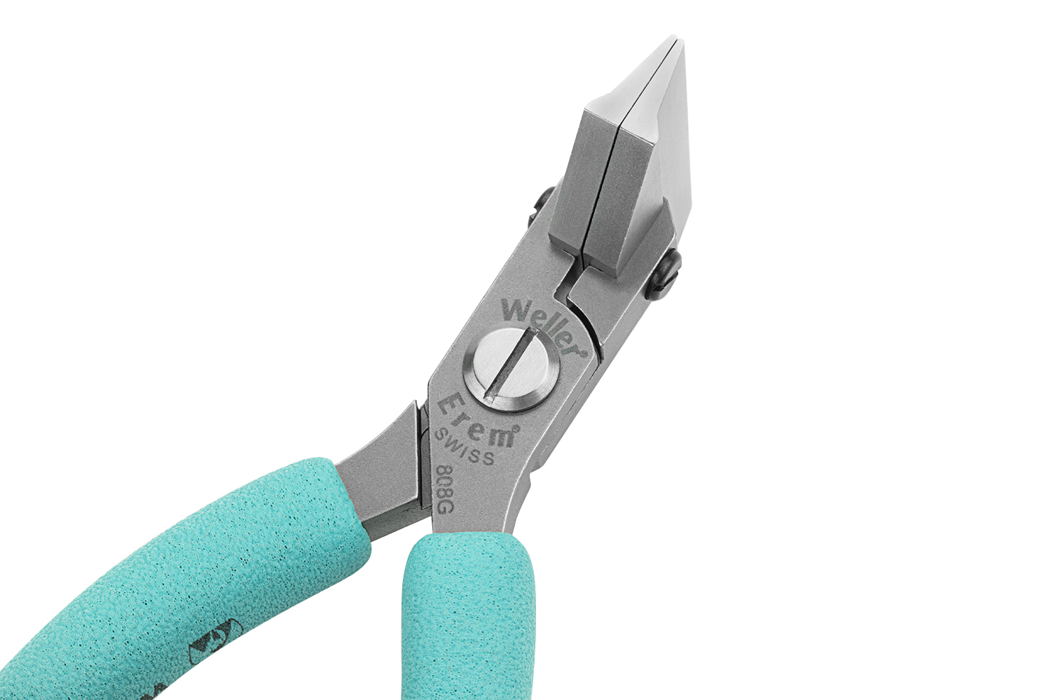 This is ESD Steel Pliers 130 mm Overall Length manufactured by Erem. The manufacturer part number is 808G. It jaw is about 23mm in length . The product has an integral straight tip. It has a non sparking nature no . The product is made from highly stable and reliable steel. It has an overall length of 130 mm. Moreover, it has a plier of flat nose pliers type . ESD Safety - yes. The product consists of 1 pieces.