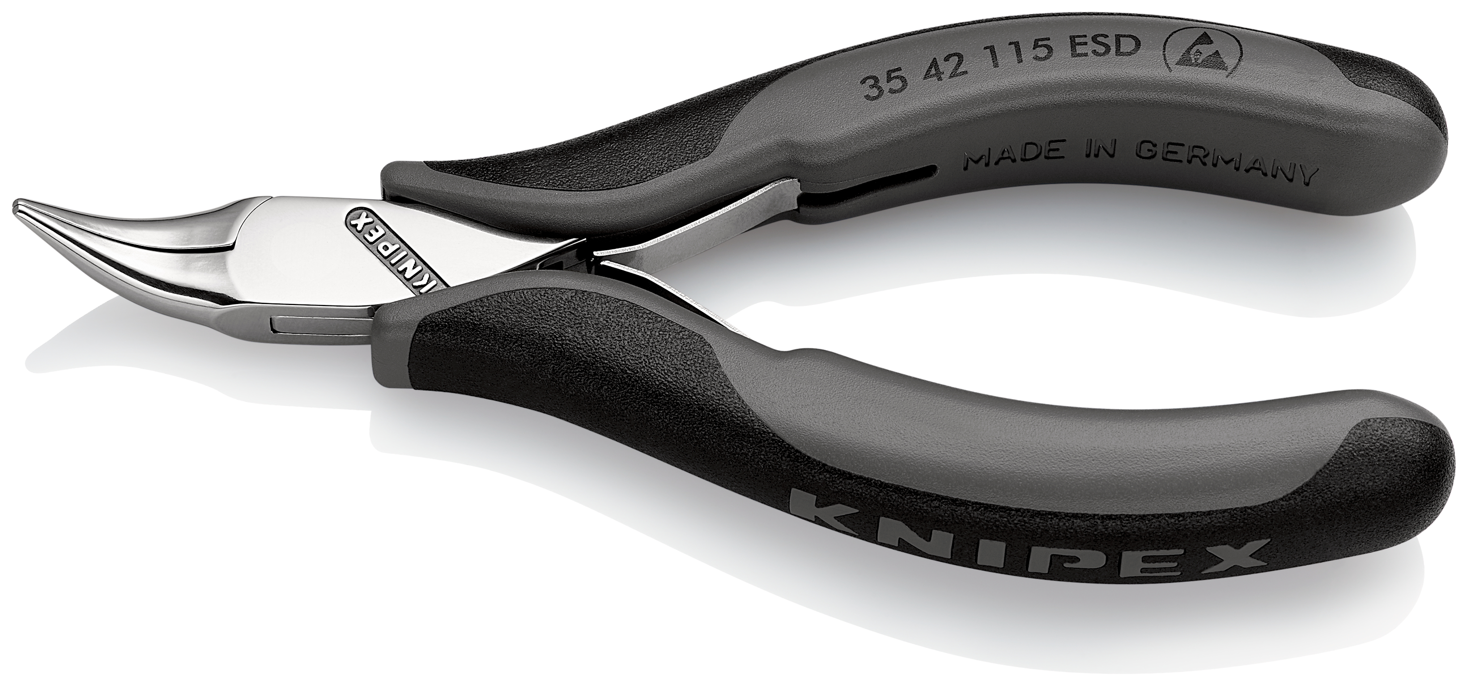 This is ESD Chrome Plated Steel Gripping pliers 115 mm Overall Length manufactured by Knipex. The manufacturer part number is 35 42 115 ESDRS. It jaw is about 22.5mm in length . The product has an integral flat, straight tip. The product is made from highly stable and reliable ball bearing chrome steel. It has an overall length of 115 mm. Moreover, it has a plier of long nose pliers type . VDE/1000V Approval Options - no. It has a model number 35 42. ESD Safety - yes. In addition, Its jaw is 2mm in depth . The product consists of 1 pieces. It is height safe no .