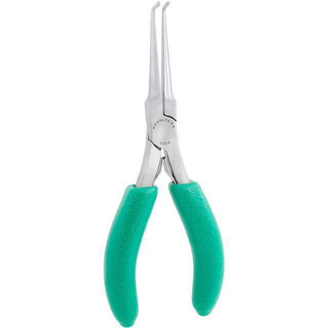 This is manufactured by Excelta Corporation. The manufacturer part number is 2904. It is assigned with possible HTSUS value of 8203.20.6030. The product is not applicable. The built-in exquisite tip is a bent nose tip. This is basically a useful and handy standard. It is shipped in box package . Its typical moisture sensitivity level is not applicable. Its accurate length is 5.75" (146.1mm). The jaw is a special smooth jaw. It has a long 6 weeks standard lead time. The splendid features of the product include soft grips. The tip is designed with a angled 90° shape. The product is designated with the ear99 code number.