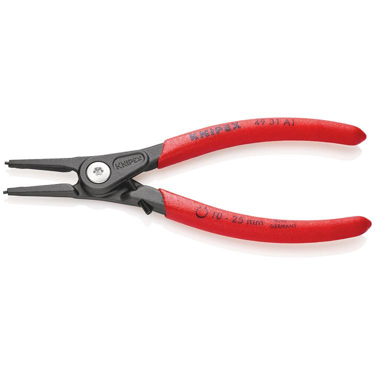 This is Circlip Pliers 140 mm Overall Straight Tip manufactured by Knipex. The manufacturer part number is 49 31 A1. The product has an integral straight tip. The product is made from highly stable and reliable chrome vanadium electric steel. The product consists of 1 pieces. Moreover, it has a plier of circlip pliers type . It has an overall length of 140 mm.