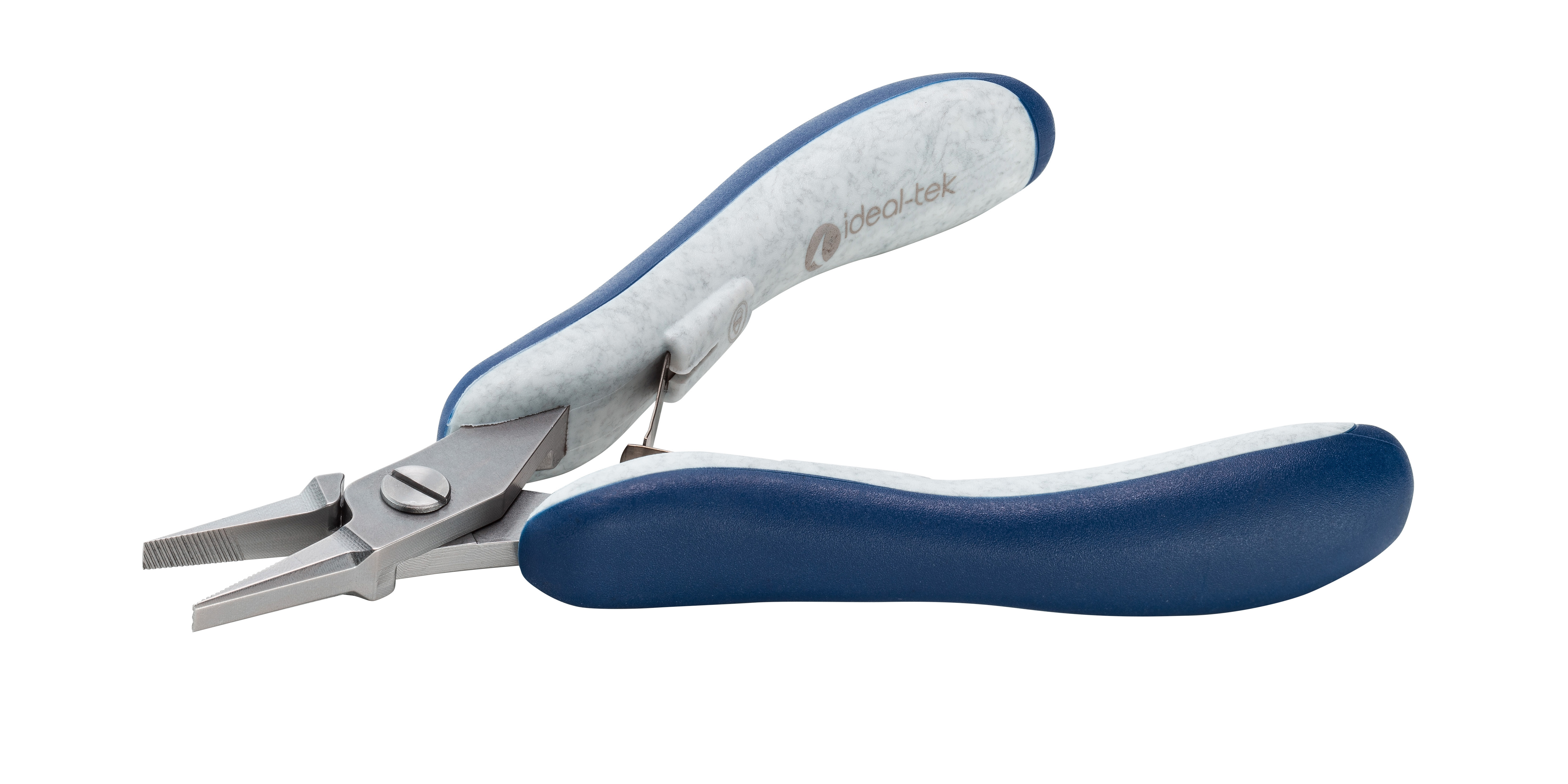 This is Pliers 130 mm Overall Flat Tip 18mm Jaw ESD manufactured by ideal-tek. The manufacturer part number is ES6012.CR.BG. It jaw is about 18mm in length . The product has an integral flat tip. The product is made from highly stable and reliable high carbon chromium low alloy steel. It has an overall length of 130 mm. It has a model number es6012.cr.bg. VDE/1000V Approval Options - no. Moreover, it has a plier of flat nose pliers type . ESD Safety - yes.
