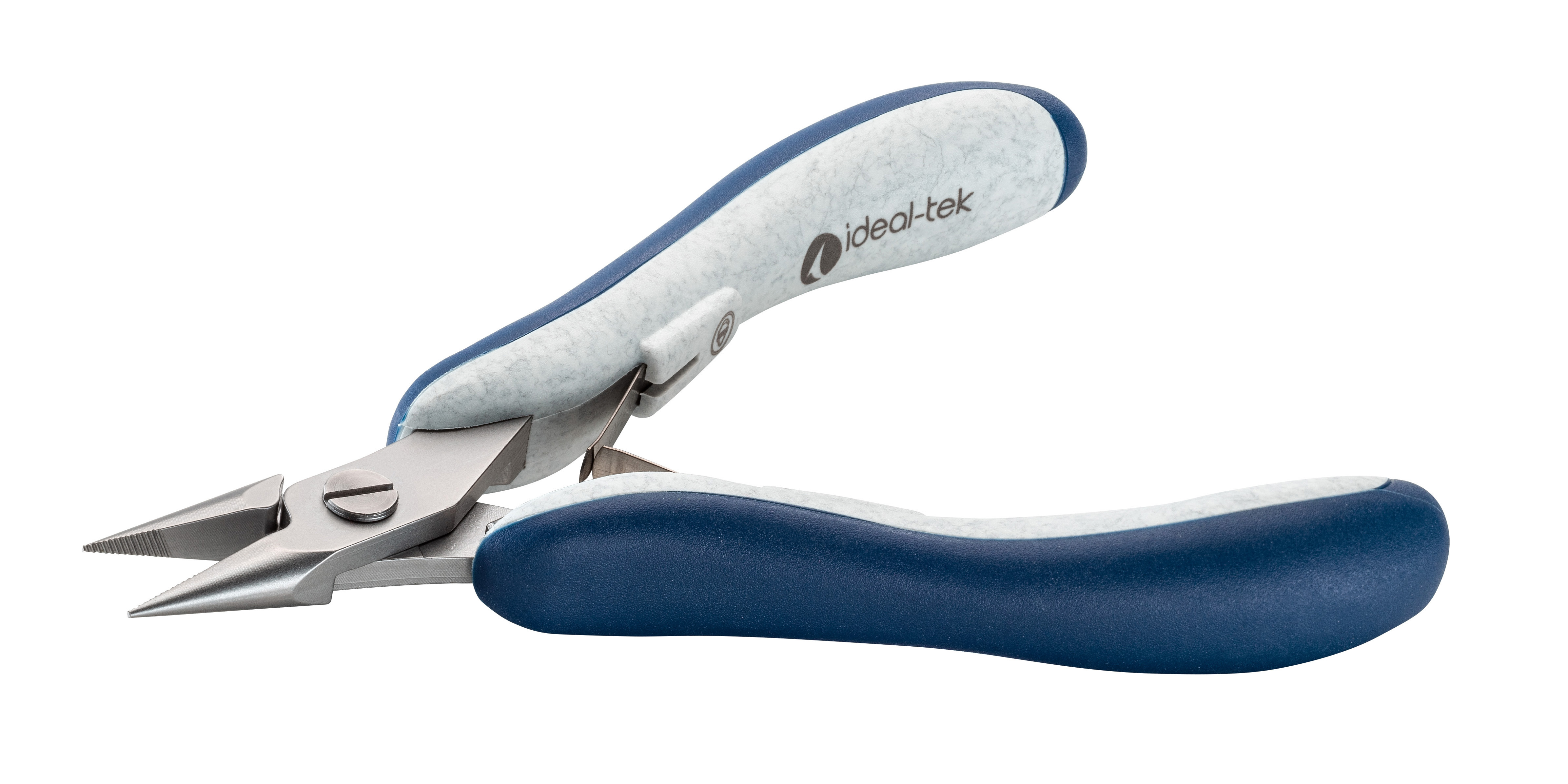 This is Pliers 130 mm Overall Straight Tip 18mm Jaw ESD manufactured by ideal-tek. The manufacturer part number is ES6022.CR.BG. It jaw is about 18mm in length . The product has an integral straight tip. The product is made from highly stable and reliable high carbon chromium low alloy steel. It has an overall length of 130 mm. It has a model number es6022.cr.bg. VDE/1000V Approval Options - no. Moreover, it has a plier of nose pliers type . ESD Safety - yes.