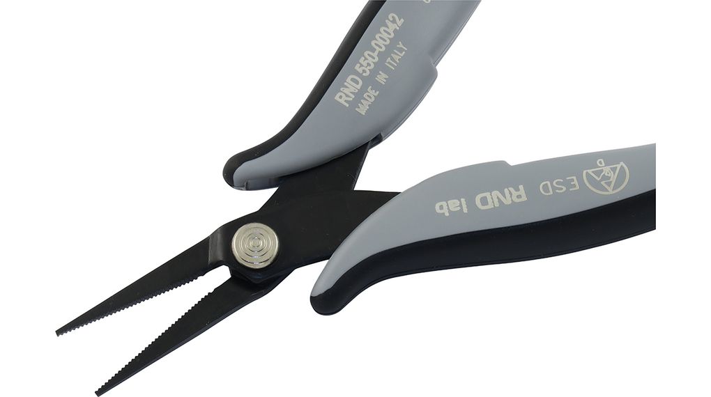 This is 550-00042 Pliers 155 mm Overall Pointed Straight Tip 155mm Jaw ESD manufactured by RND. The manufacturer part number is RND 550-00042. It jaw is about 155mm in length . The product has an integral pointed, straight tip. ESD Safety - yes. It has a model number rnd 550-00042. Moreover, it has a plier of gripping pliers type . It has an overall length of 155 mm. The product consists of 1 pieces.