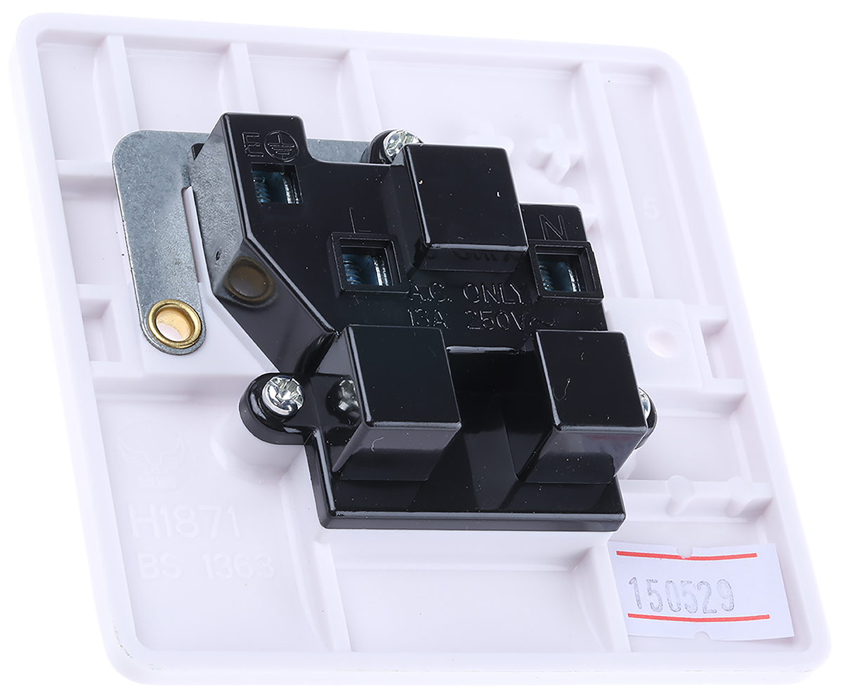 This is White 1 Gang Urea Formaldehyde Unswitched Electrical Socket Type G - British 13A Flush Mount IP20 0 Poles manufactured by RS Pro. The manufacturer part number is 775-8062. It is tailored with a/an white colour family . The product has a current rating of 13a. Moreover, it has a minimum 25mm box depth . Moreover, it has 86mm of overall height. It has a screwedtype faceplate mounting . It is suitable for indoor use . Its faceplate depth is approximately 7mm . It is comprised of 1 modules. It has a bs standard fixing . Moreover, the product has a nominal 230 v voltage rating. It has a decent white colour. Its international protection rating is ip20 . Furthermore, the product has an overall dimensions of 86 x 86mm. It is typically switched no . The product rs white, is a highly preferred choice for users. It has an overall width of 86mm. It comprises 1 gangs. The terminal is a screw terminal type. The product is available in flush mount style. It includes an earth terminal yes . It has equipped with 0 poles. The type g - british socket offers profound benefits and is well-designed.