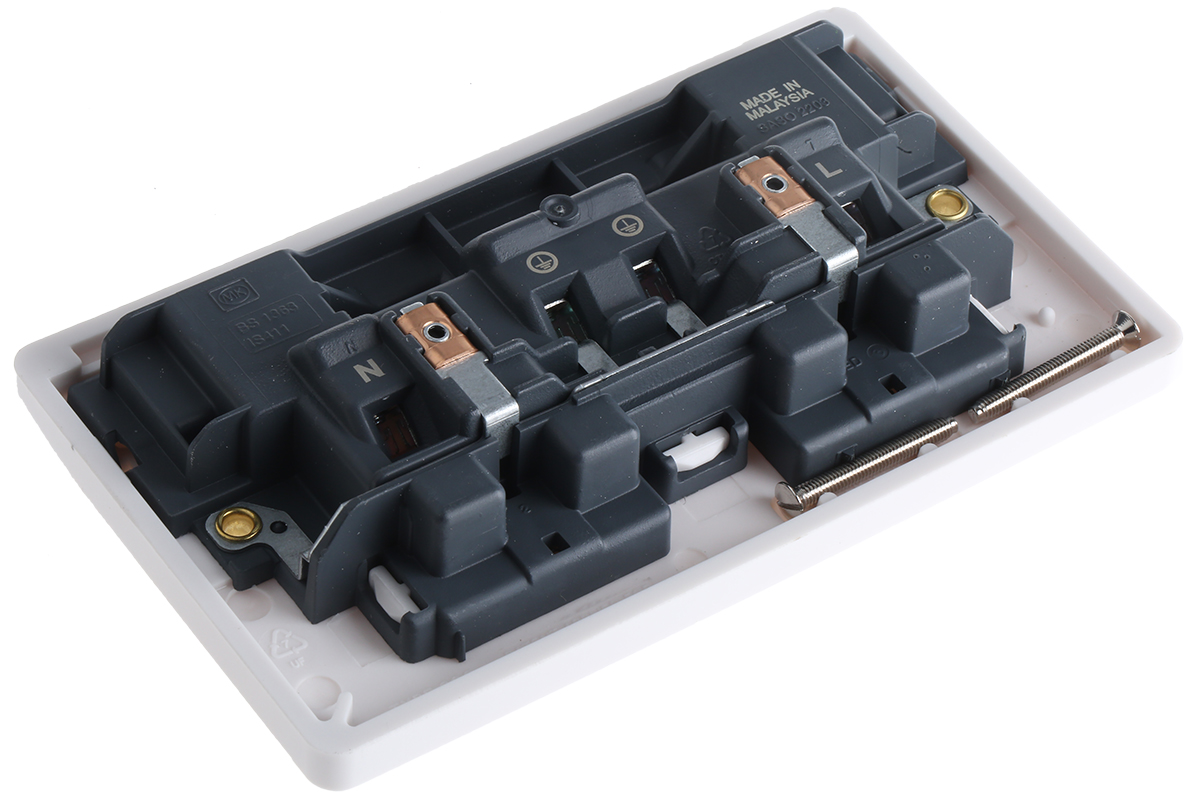 This is MK white 2 Gang Urea Formaldehyde Unswitched Power Socket Type G - British 13A Flush Mount IP2XD manufactured by MK Electric. The manufacturer part number is K781 WHI. Its international protection rating is ip2xd . It is tailored with a/an white colour family . The product has a current rating of 13a. It is typically switched no . The product logic plus, is a highly preferred choice for users. It has an overall width of 86mm. Moreover, the product has a nominal 230 v voltage rating. It comprises 2 gangs. It has a bs standard fixing . The product is available in flush mount style. Moreover, it has a minimum 25mm box depth . It has a screwedtype faceplate mounting . Moreover, it has 86mm of overall height. It is suitable for indoor use . Its faceplate depth is approximately 7mm . The type g - british socket offers profound benefits and is well-designed. It includes an earth terminal yes . It is comprised of 2 modules. It has a decent white colour.