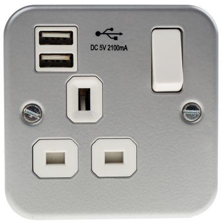 This is 1 Gang Switched 13A and USB Socket Type G - British USB 13A Surface Mount manufactured by RS Pro. The manufacturer part number is 847-9659. It is tailored with a/an grey colour family . Moreover, the product has a nominal 5 v dc, 240 v ac voltage rating. The product has a current rating of 13a. It is typically switched yes . The type g - british, usb socket offers profound benefits and is well-designed. The product is made from highly stable and reliable metal. It comprises 1 gangs. It has a bs standard fixing . The product is available in surface mount style. Moreover, it has a minimum 45mm box depth . Furthermore, the product has an overall dimensions of 82 x 82 x 45mm. Moreover, it has 82mm of overall height. Similarly, the product has 45mm of overall depth. The product also provides special features, such as usb socket. It has an overall width of 82mm.