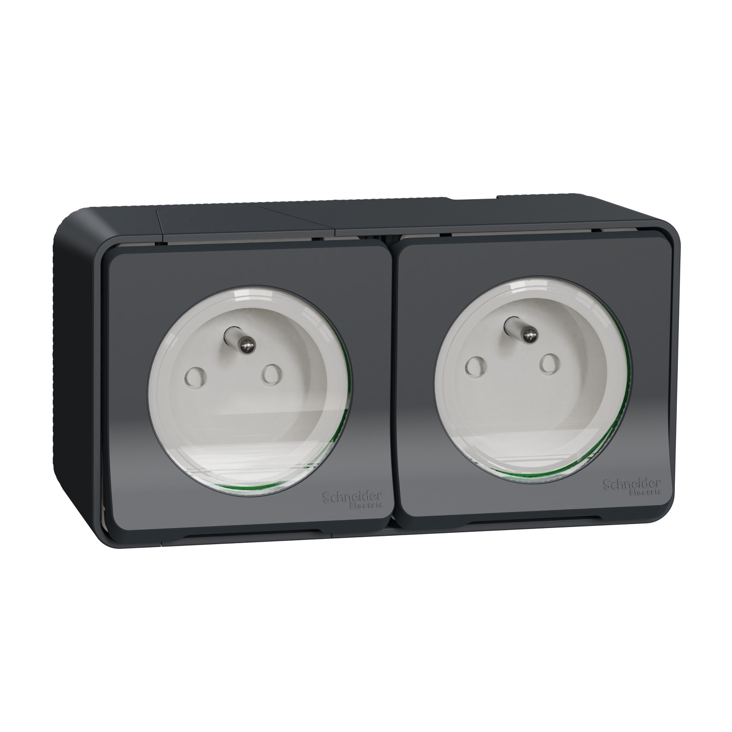 This is Grey 2 Gang Plug Socket 2 Poles 16A French 2P Indoor Outdoor Use manufactured by Schneider Electric. The manufacturer part number is MUR36028. The product has a current rating of 16a. It is typically switched no . It has a decent grey colour. It comprises 2 gangs. The product is available in surface mount style. It is suitable for indoor, outdoor use . It has equipped with 2 poles. The french 2p socket offers profound benefits and is well-designed.