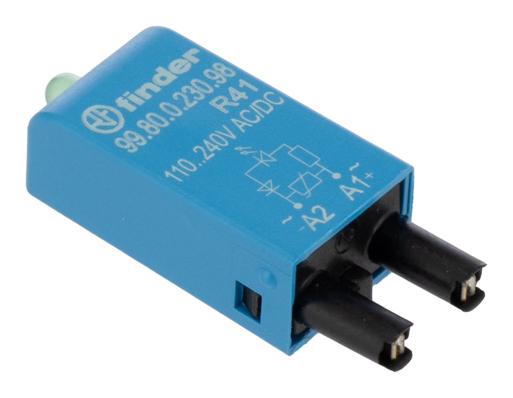 This is Plug In Interface Relay Module 110 → 240V ac/dc manufactured by Finder. The manufacturer part number is 99.80.0.230.98. The product 99 series, is a highly preferred choice for users. It is a type of rc circuit accessory.