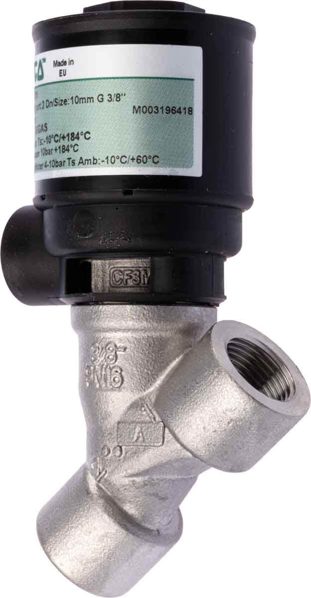 This is Angle Seat Pneumatic Valve 3/8 in G manufactured by EMERSON – ASCO. The manufacturer part number is E290A791. The product contains a high-quality angle seat type valve . It provides up to 16 bar maximum working pressure. It has a typical thread size of 3/8in. The threaded is a g standard. The default valve position is nc .