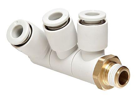This is Pneumatic Elbow Threaded Adapter R 1/4 Male manufactured by SMC. The manufacturer part number is KQ2VT06-02NS. A quality product with a nice nickel plated finish. The product is made from highly stable and reliable brass, pbt, pp, stainless steel. It features 1 mpa, 3 mpa maximum operating pressure. The connector A is r 1/4 male connector. The product has a threaded style. Its connector is of male gender . The product has a kq2 manufacturer series. Whereas, the minimum operating temperature of the product is -5 °c, 0 °c. Its connector is of r thread standard . It has a maximum operating temperature of +40 °c, +60 °c.