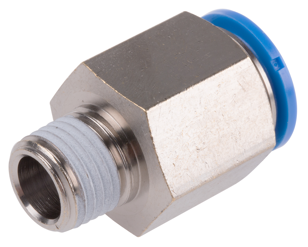 This is Pneumatic Straight Threaded-to-Tube Adapter R 1/4 Male Push In 12 mm Push In 12 mm manufactured by Festo. The manufacturer part number is QS-1/4-12. A quality product with a nice nickel plated finish. The connector A is r 1/4 male connector. It features 14 bar maximum operating pressure. The product is available in inline configuration. While the connector B is push in 12 mm. Moreover, its thread is made up of brass material . It is designed for food grade no . While it has 164980 of model number. The threaded connection is r 1/4 male. The product has a threaded-to-tube style. The product's body is nicely designed from brass materials. The product has a qs manufacturer series. It is resistant to chemical no . The pneumatic fitting is a straight threaded adaptor. It has a maximum operating temperature of +80°c. Whereas, the minimum operating temperature of the product is -10°c.