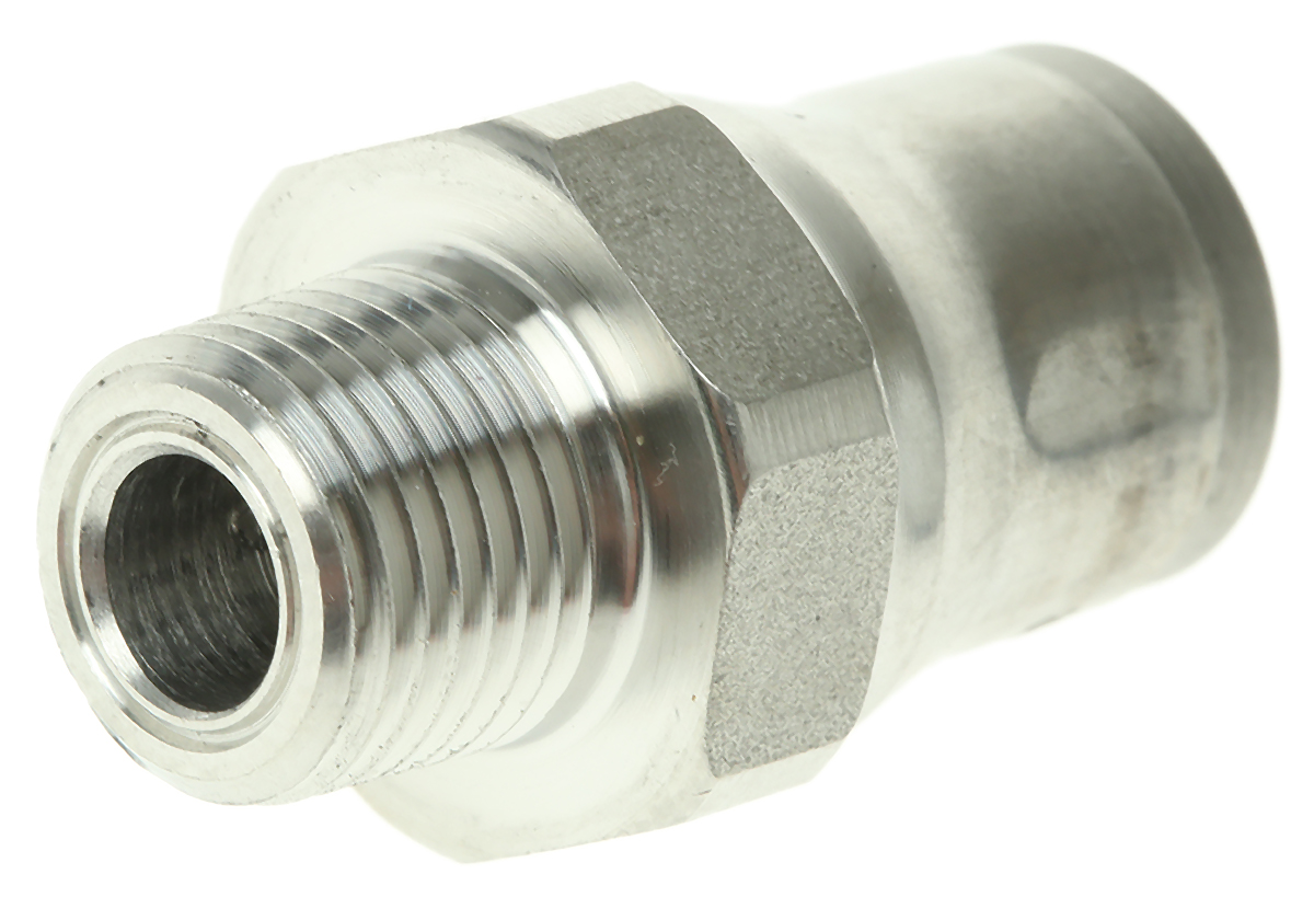 This is Pneumatic Straight Threaded-to-Tube Adapter NPT 1/8 Male Push In 8 mm manufactured by Legris. The manufacturer part number is 3805 08 11. It features 20 bar maximum operating pressure. The product is available in inline configuration. While the connector B is push in 8 mm. The connector A is npt 1/8 male connector. The threaded connection is npt 1/8 male. The product has a threaded-to-tube style. The product's body is nicely designed from stainless steel materials. The product has a lf3800 manufacturer series. The pneumatic fitting is a straight threaded adaptor. It has a maximum operating temperature of +110°c. Whereas, the minimum operating temperature of the product is -15°c.