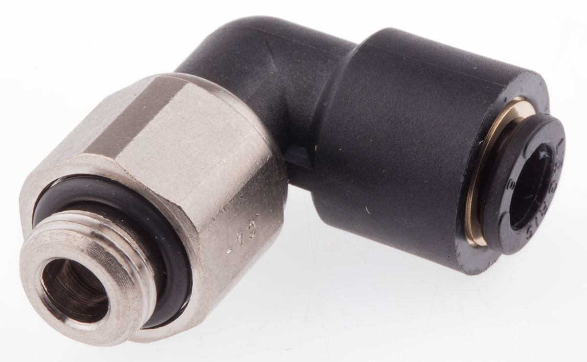This is Rotary Adapter G 1/8 Male Push In 6 mm manufactured by Legris. The manufacturer part number is 3189 06 10. It has a 90° angle . It features 20 bar maximum operating pressure. The product is available in inline configuration. While the connector B is push in 6 mm. Whereas, the minimum operating temperature of the product is -20°c. The connector A is g 1/8 male connector. Moreover, its thread is made up of nickel plated brass material . The threaded connection is g 1/8 male. The product has a threaded-to-tube style. The product's body is nicely designed from glass reinforced nylon materials. The product has a lf3000 manufacturer series. The pneumatic fitting is a elbow threaded adaptor. It has a maximum operating temperature of +80°c. It includes a swivel connection .