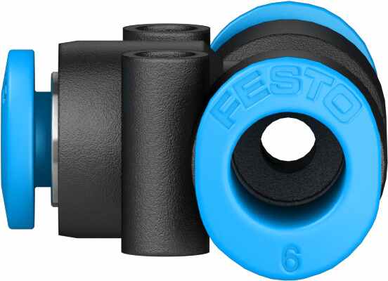 This is QSMT Pneumatic Tee Tube-to-Tube Adapter Push In 6 mm manufactured by Festo. The manufacturer part number is QSMT-6-4. It features 14 bar maximum operating pressure. It has a 90° angle . The product complies with all safety standards, such as iso8573-1:2010. The product is available in inline configuration. While the connector B is push in 6 mm. The connector A is push in 6 mm connector. While it has 153369 of model number. The product has a tube-to-tube style. The product's body is nicely designed from pbt materials. The product has a qsmt manufacturer series. The pneumatic fitting is a tee tube-to-tube adaptor. It has a maximum operating temperature of +80°c. Whereas, the minimum operating temperature of the product is -10°c.