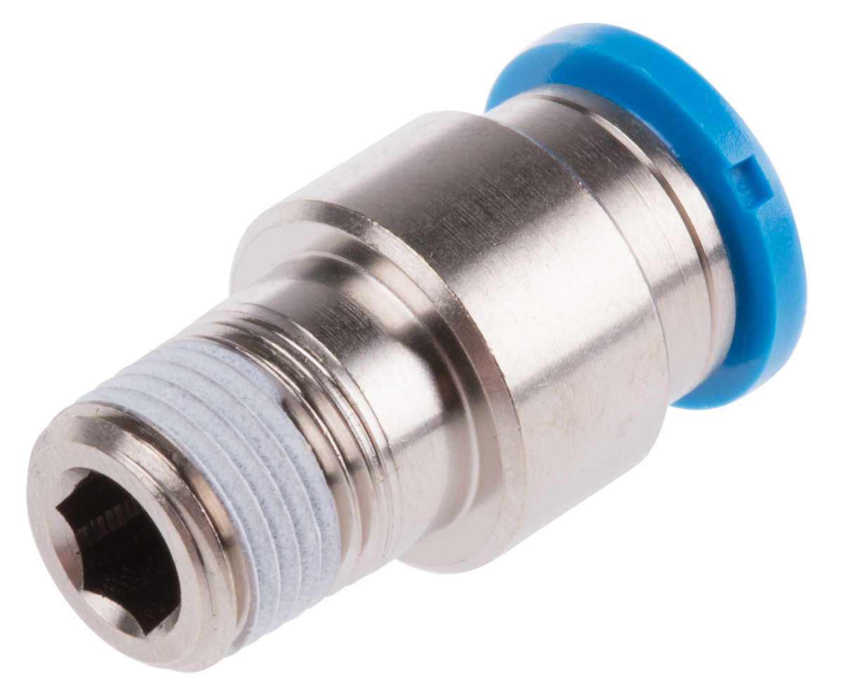 This is Pneumatic Straight Threaded-to-Tube Adapter R 1/8 Male Push In 8 mm Push In 8 mm manufactured by Festo. The manufacturer part number is QS-1/8-8-I. A quality product with a nice nickel plated finish. The connector A is r 1/8 male connector. It features 14 bar maximum operating pressure. The product is available in inline configuration. While the connector B is push in 8 mm. Moreover, its thread is made up of brass material . It is designed for food grade no . While it has 153015 of model number. The threaded connection is r 1/8 male. The product has a threaded-to-tube style. The product's body is nicely designed from brass materials. The product has a qs manufacturer series. It is resistant to chemical no . The pneumatic fitting is a straight threaded adaptor. It has a maximum operating temperature of +80°c. Whereas, the minimum operating temperature of the product is -10°c.