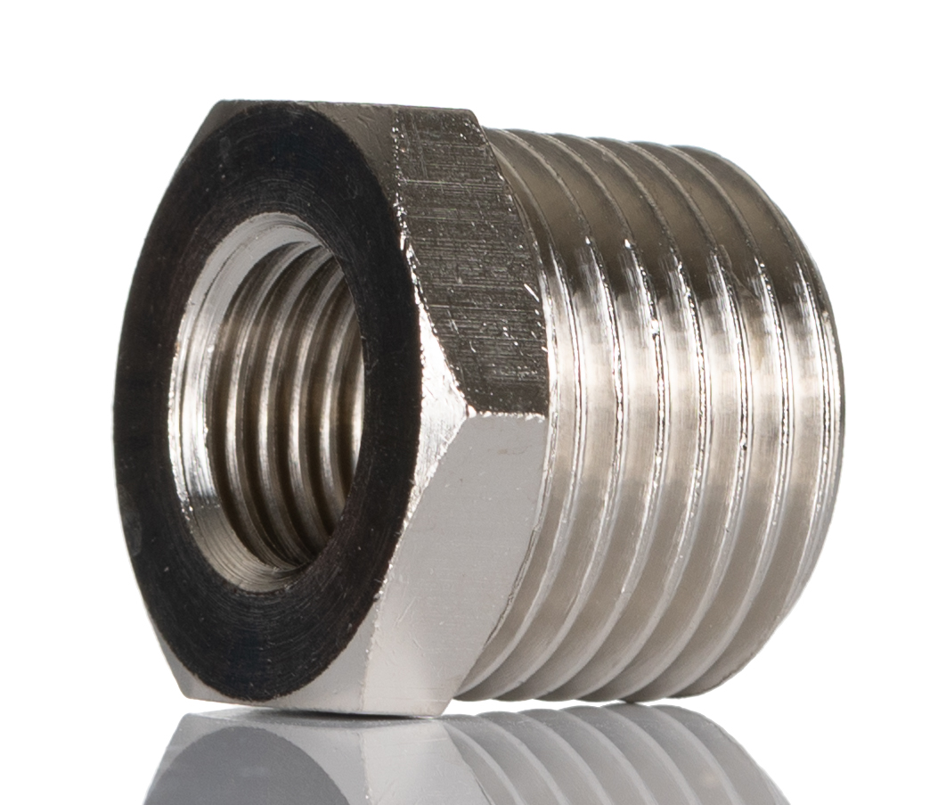 This is Pneumatic Straight Threaded Adapter R 1/2 Male Female R R Male manufactured by SMC. The manufacturer part number is 2530-1/2-1/4. While the connector B is r 1/4 female. The pneumatic fitting is a straight threaded adaptor. The connector A is r 1/2 male connector. The product has a threaded style.