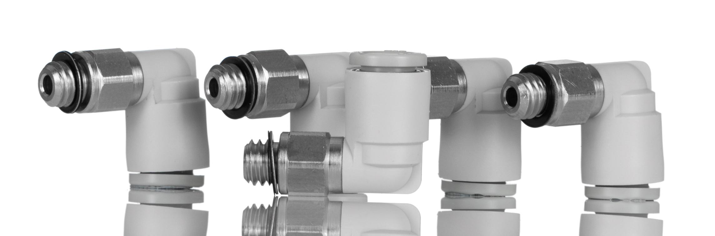 This is Pneumatic Elbow Threaded-to-Tube Adapter M3 x 0.5 Male Push In 4 mm manufactured by SMC. The manufacturer part number is KQ2L04-M3G. It has a 90° angle . While the connector B is push in 4 mm. The connector A is m3 male connector. Moreover, its thread is made up of brass material . The threaded connection is m3 male. The product has a threaded-to-tube style. The product's body is nicely designed from pbt materials. The product has a kq2 manufacturer series. Whereas, the minimum operating temperature of the product is -5°c. The pneumatic fitting is a elbow threaded adaptor. It has a maximum operating temperature of +60°c. It includes a swivel connection .