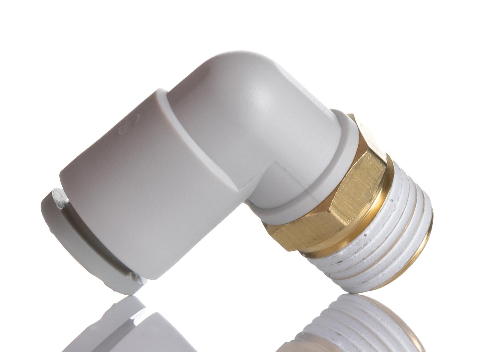 This is Pneumatic Elbow Threaded-to-Tube Adapter R 1/4 Male Push In 6 mm manufactured by SMC. The manufacturer part number is KQ2L06-02AS. It has a 90° angle . While the connector B is push in 6 mm. The connector A is r 1/4 male connector. Moreover, its thread is made up of brass material . The threaded connection is r 1/4 male. The product has a threaded-to-tube style. The product's body is nicely designed from pbt materials. The product has a kq2 manufacturer series. Whereas, the minimum operating temperature of the product is -5°c. The pneumatic fitting is a elbow threaded adaptor. It has a maximum operating temperature of +60°c. It includes a swivel connection .