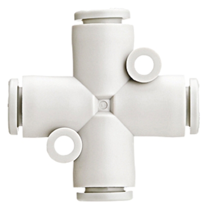 This is Pneumatic Cross Tube-to-Tube Adapter Connection A 10mm B 10mm C 10mm D 10mm manufactured by SMC. The manufacturer part number is KQ2TW10-00A. While the connector B is push in 10 mm. It has a standard push in 10 mm C connecter . The connector A is push in 10 mm connector. With push in 10 mm connector D . The product has a tube-to-tube style. The product's body is nicely designed from pbt materials. The product has a kq2 manufacturer series. Whereas, the minimum operating temperature of the product is -5°c. The pneumatic fitting is a cross tube-to-tube adaptor. It has a maximum operating temperature of +60°c.