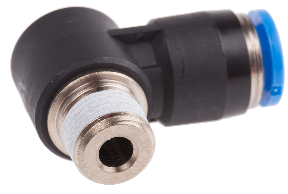 This is Pneumatic Elbow Threaded-to-Tube Adapter R 1/8 Male Push In 6 mm 6mm Tube Connection manufactured by Festo. The manufacturer part number is QSLV-1/8-6-I. It is designed for food grade no . It has a 90° angle . It features 14 bar maximum operating pressure. The product is available in inline configuration. While the connector B is push in 6 mm. Moreover, its thread is made up of nickel plated brass material . Whereas, the minimum operating temperature of the product is -10°c. The connector A is r 1/8 male connector. While it has 153097 of model number. The threaded connection is r 1/8 male. The product has a threaded-to-tube style. The product's body is nicely designed from pbt materials. The product has a qs manufacturer series. It is resistant to chemical no . The pneumatic fitting is a elbow threaded adaptor. It has a maximum operating temperature of +80°c. It includes a swivel connection .