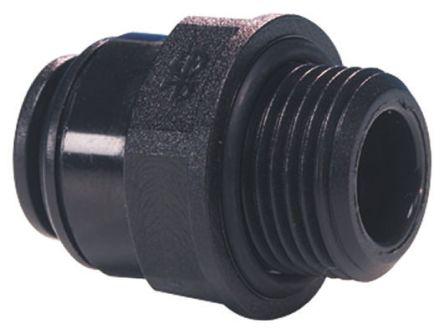 This is Pneumatic Straight Threaded-to-Tube Adapter R 1/4 Male Push In 5 mm manufactured by John Guest. The manufacturer part number is PM010502E. It features 16 bar maximum operating pressure. The product is available in inline configuration. While the connector B is push in 5 mm. The connector A is r 1/4 male connector. Moreover, its thread is made up of acetal copolymer material . The threaded connection is r 1/4 male. The product has a threaded-to-tube style. The product's body is nicely designed from acetal copolymer materials. The product has a pm manufacturer series. Whereas, the minimum operating temperature of the product is -20°c. The pneumatic fitting is a straight threaded adaptor. It has a maximum operating temperature of +65°c.