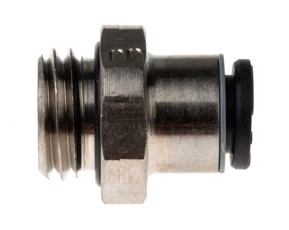 This is Pneumatic Straight Threaded-to-Tube Adapter M12 x 1.5 Male Push In 6 mm manufactured by Legris. The manufacturer part number is 3101 06 67. It features 20 bar maximum operating pressure. The product is available in inline configuration. While the connector B is push in 6 mm. The connector A is m12 male connector. Moreover, its thread is made up of nickel plated brass material . The threaded connection is m12 x 1.5 male. The product has a threaded-to-tube style. The product's body is nicely designed from nickel plated brass materials. The product has a lf3000 manufacturer series. The pneumatic fitting is a straight threaded adaptor. It has a maximum operating temperature of +80°c. Whereas, the minimum operating temperature of the product is -20°c.