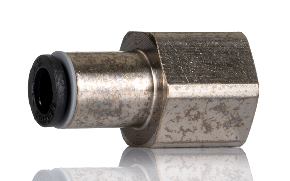 This is Pneumatic Straight Threaded-to-Tube Adapter G 1/4 Female Push In 6 mm manufactured by Legris. The manufacturer part number is 3114 06 13. A quality product with a nice nickel plated finish. It features 20 bar maximum operating pressure. The product is available in inline configuration. While the connector B is push in 6 mm. The connector A is g 1/4 female connector. Moreover, its thread is made up of nickel plated brass material . The threaded connection is g 1/4 female. The product has a threaded-to-tube style. The product's body is nicely designed from nickel plated brass materials. The product has a lf3000 manufacturer series. The pneumatic fitting is a straight threaded adaptor. It has a maximum operating temperature of +80°c. Whereas, the minimum operating temperature of the product is -20°c.