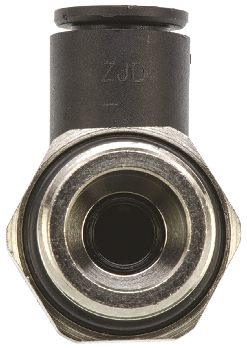 This is Pneumatic Elbow Threaded-to-Tube Adapter G 3/8 Male Push In 8 mm manufactured by Legris. The manufacturer part number is 3199 08 17. It has a 90° angle . It features 20 bar maximum operating pressure. The product is available in inline configuration. While the connector B is push in 8 mm. Whereas, the minimum operating temperature of the product is -20°c. The connector A is g 3/8 male connector. Moreover, its thread is made up of nickel plated brass material . The threaded connection is g 3/8 male. The product has a threaded-to-tube style. The product's body is nicely designed from glass reinforced nylon materials. The product has a lf3000 manufacturer series. The pneumatic fitting is a elbow threaded adaptor. It has a maximum operating temperature of +80°c. It includes a swivel connection .