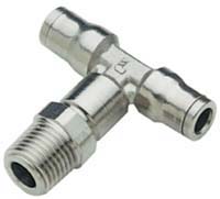 This is Pneumatic Tee Threaded-to-Tube Adapter 3/8 x 10mm x 10mm 30 bar manufactured by Legris. The manufacturer part number is 3608 10 17. A quality product with a nice nickel plated finish. It features 30 bar maximum operating pressure. While the connector B is push in 10 mm. The connector A is push in 10 mm connector. Moreover, its thread is made up of nickel plated brass material . The threaded connection is r 3/8 male. The product has a threaded-to-tube style. The product's body is nicely designed from nickel plated brass materials. The product has a lf3600 manufacturer series. Whereas, the minimum operating temperature of the product is -20°c. The pneumatic fitting is a tee threaded adaptor. It has a maximum operating temperature of +150°c.
