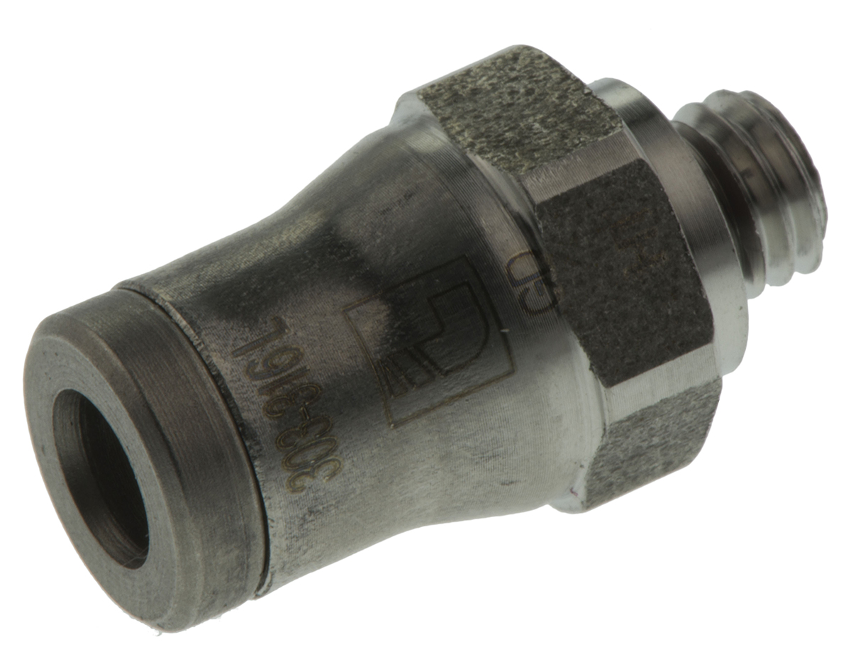 This is Pneumatic Straight Threaded-to-Tube Adapter M5 x 0.8 Male Push In 4 mm manufactured by Legris. The manufacturer part number is 3801 04 19. It features 20 bar maximum operating pressure. The product is available in inline configuration. While the connector B is push in 4 mm. The connector A is m5 male connector. The threaded connection is m5 x 0.8 male. The product has a threaded-to-tube style. The product's body is nicely designed from stainless steel materials. The product has a lf3800 manufacturer series. The pneumatic fitting is a straight threaded adaptor. It has a maximum operating temperature of +110°c. Whereas, the minimum operating temperature of the product is -15°c.