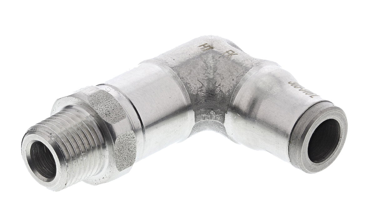 This is Male Stud Elbow R 1/8 Male Push In 6 mm manufactured by Legris. The manufacturer part number is 3809 06 10. It has a 90° angle . It features 20 bar maximum operating pressure. The product is available in inline configuration. While the connector B is push in 6 mm. Whereas, the minimum operating temperature of the product is -15°c. The connector A is r 1/8 male connector. The threaded connection is r 1/8 male. The product has a threaded-to-tube style. The product's body is nicely designed from stainless steel materials. The product has a lf3800 manufacturer series. The pneumatic fitting is a elbow threaded adaptor. It has a maximum operating temperature of +110°c. It includes a swivel connection .