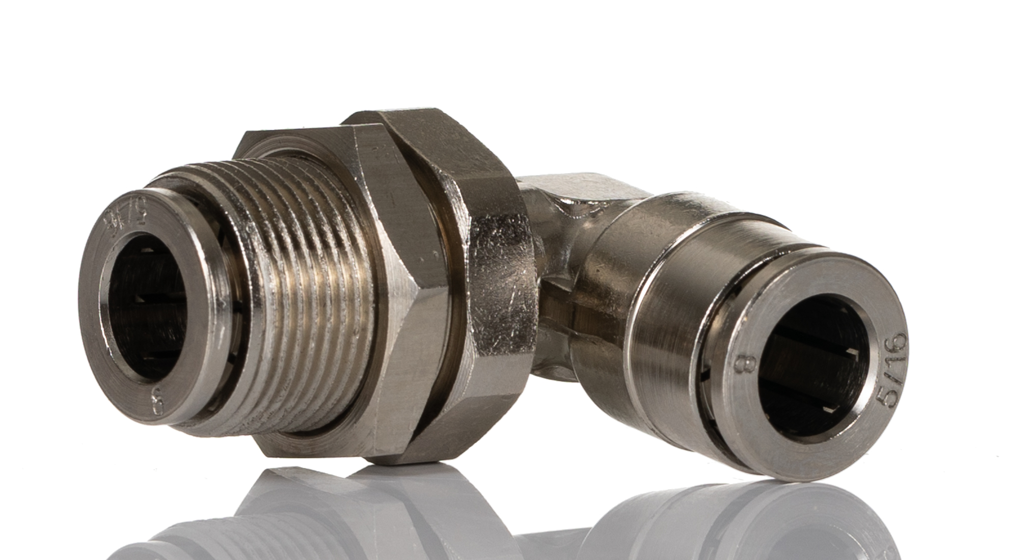 This is Pneumatic Bulkhead Threaded-to-Tube Adapter Push In 8 mm BSPPx8mm manufactured by Norgren. The manufacturer part number is 100490800. It includes 1 inlet ports . The pneumatic fitting is a straight threaded adaptor. It has a 90° angle . It features 18 bar maximum operating pressure. Moreover, it has a standard push in 8 mm outlet port . While the connector B is push in 8 mm. The connector A is push in 8 mm connector. While it has 10049 of model number. The threaded connection is m16 x 1 male. The product has a threaded-to-tube style. The given diameter of mounting hole is 8mm. The product's body is nicely designed from nickel plated brass materials. It has a standard m16 male inlet port . The product has a pneufit 10 manufacturer series. Whereas, the minimum operating temperature of the product is -20°c. In addition, the number of outlet ports included is/are 1 . It has a maximum operating temperature of +80°c. It includes a swivel connection .