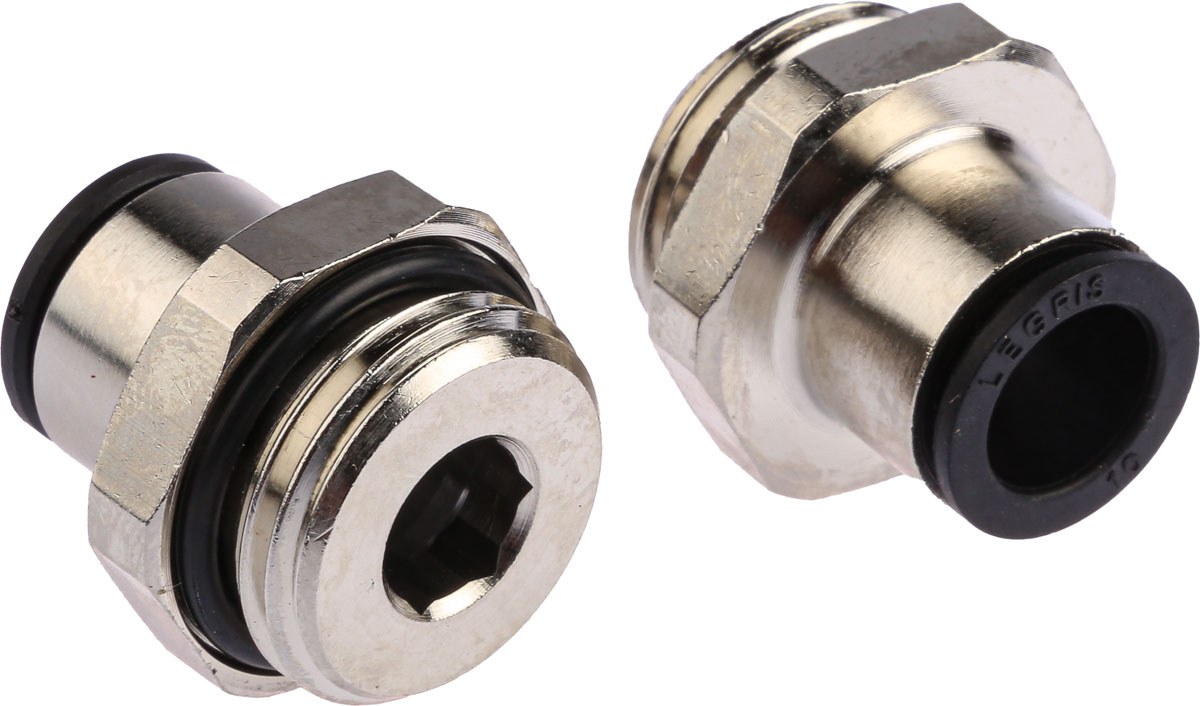 This is Pneumatic Straight Threaded-to-Tube Adapter G 1/2 Male Push In 10 mm manufactured by Legris. The manufacturer part number is 3101 10 21. It features 20 bar maximum operating pressure. The product is available in inline configuration. While the connector B is push in 10 mm. The connector A is g 1/2 male connector. Moreover, its thread is made up of nickel plated brass material . The threaded connection is g 1/2 male. The product has a threaded-to-tube style. The product's body is nicely designed from nickel plated brass materials. The product has a lf3000 manufacturer series. The pneumatic fitting is a straight threaded adaptor. It has a maximum operating temperature of +80°c. Whereas, the minimum operating temperature of the product is -20°c.