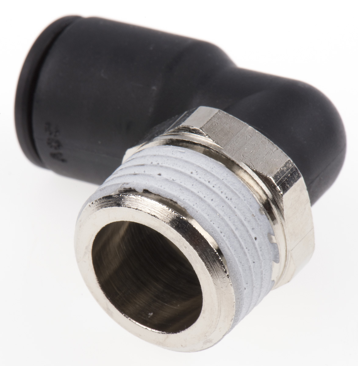 This is Pneumatic Elbow Threaded-to-Tube Adapter R 1/2 Male Push In 12 mm manufactured by Legris. The manufacturer part number is 3109 12 21. It has a 90° angle . It features 20 bar maximum operating pressure. The product is available in inline configuration. While the connector B is push in 12 mm. Whereas, the minimum operating temperature of the product is -20°c. The connector A is r 1/2 male connector. Moreover, its thread is made up of nickel plated brass material . The threaded connection is r 1/2 male. The product has a threaded-to-tube style. The product's body is nicely designed from glass reinforced nylon materials. The product has a lf3000 manufacturer series. The pneumatic fitting is a elbow threaded adaptor. It has a maximum operating temperature of +80°c. It includes a swivel connection .