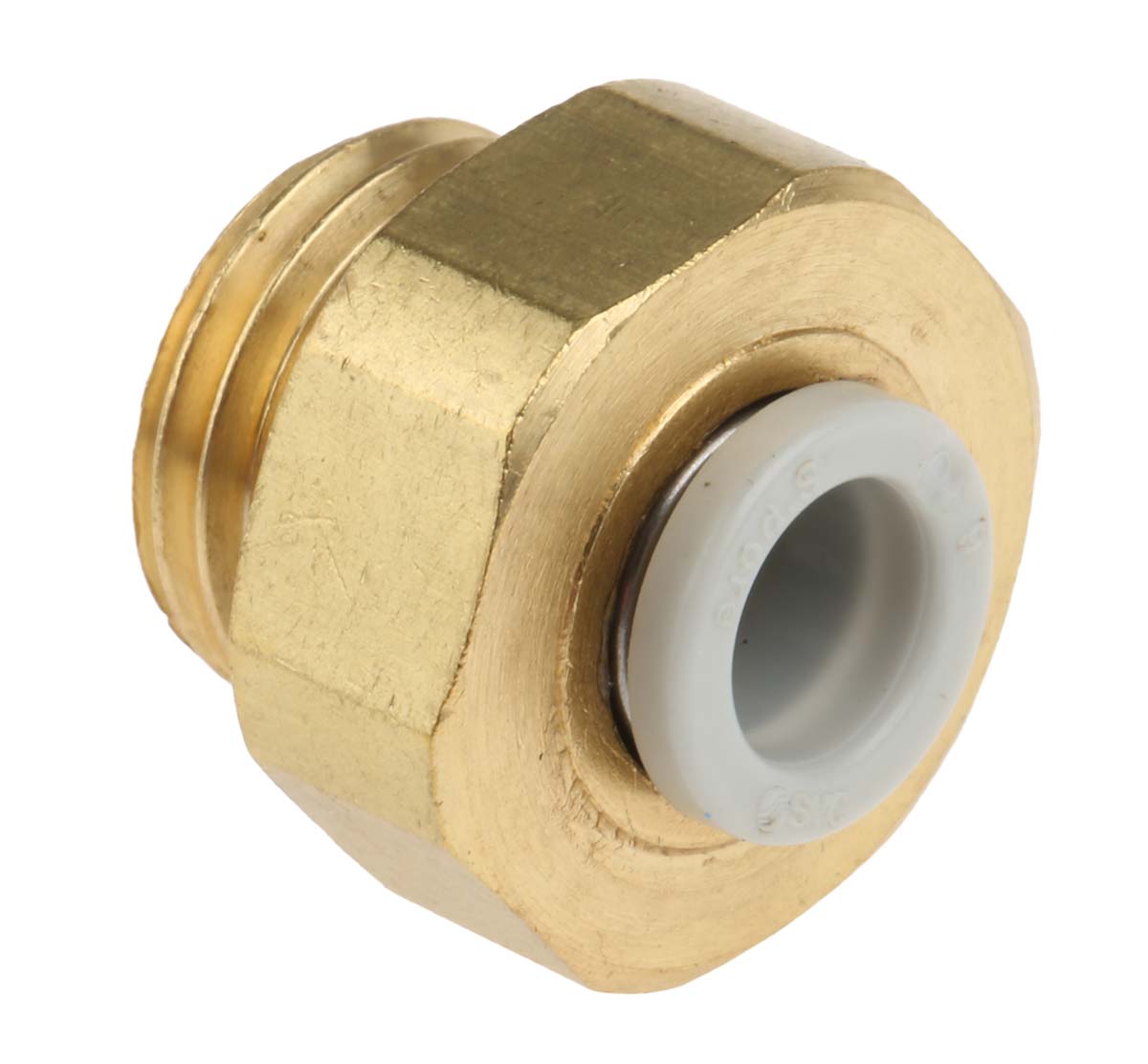 This is Pneumatic Straight Threaded-to-Tube Adapter G 1/4 Male to 6mm manufactured by SMC. The manufacturer part number is KQ2H06-G02A. It features 1 mpa, 3 (proof) mpa maximum operating pressure. The product is available in inline configuration. While the connector B is push in 6 mm. The connector A is g 1/4 male connector. The pneumatic fitting is a straight threaded adaptor. The product has a kq2 manufacturer series. Whereas, the minimum operating temperature of the product is -5°c. The product has a threaded-to-tube style. It has a maximum operating temperature of +60°c.