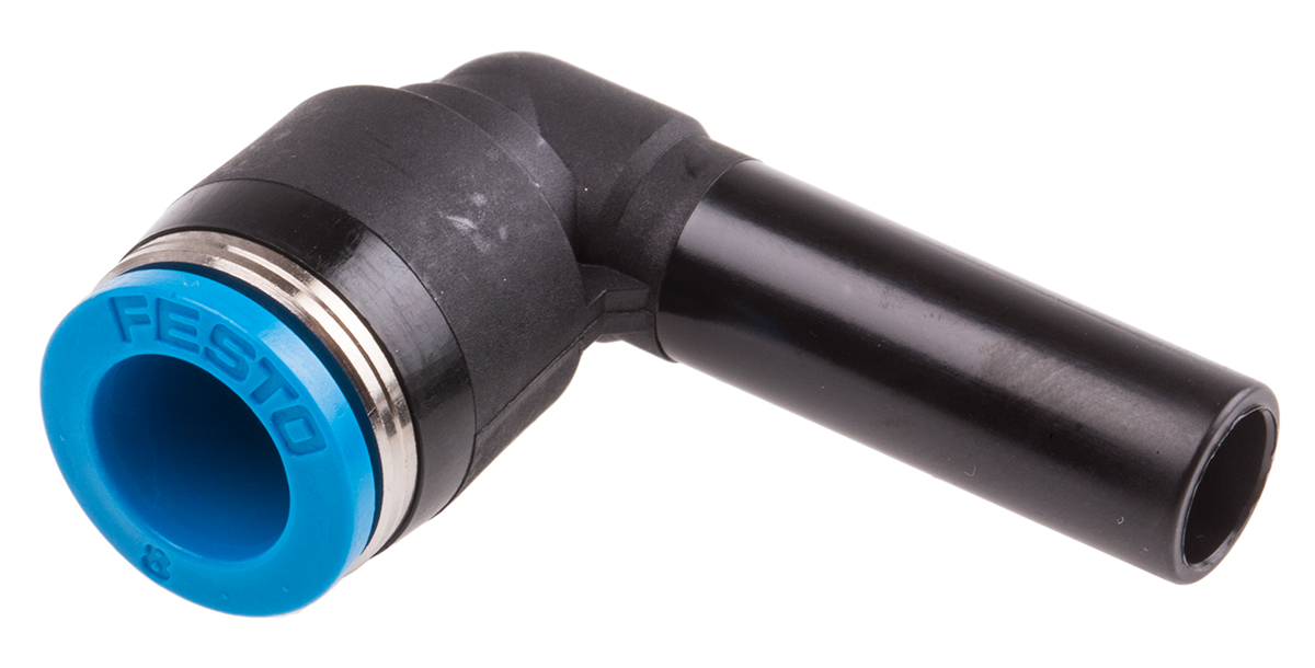 This is Pneumatic Elbow Tube-to-Tube Adapter Push In Connection A 8mm B 8mm manufactured by Festo. The manufacturer part number is QSL-8H. It is designed for food grade no . It has a 90° angle . It features 14 bar maximum operating pressure. The product is available in inline configuration. While the connector B is push in 8 mm. Moreover, its thread is made up of nickel plated brass material . Whereas, the minimum operating temperature of the product is -10°c. The connector A is push in 8 mm connector. While it has 153058 of model number. The product has a tube-to-tube style. The product's body is nicely designed from pbt materials. The product has a qsl manufacturer series. It is resistant to chemical no . The pneumatic fitting is a elbow tube-totube adaptor. It has a maximum operating temperature of +80°c. It includes a swivel connection .