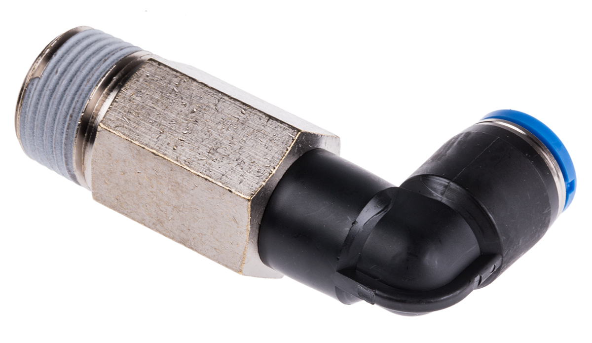 This is Pneumatic Elbow Threaded-to-Tube Adapter R 3/8 Male Push In 8 mm 8mm Tube Connection manufactured by Festo. The manufacturer part number is QSLL-3/8-8. It is designed for food grade no . It has a 90° angle . It features 14 bar maximum operating pressure. The product is available in inline configuration. While the connector B is push in 8 mm. Moreover, its thread is made up of nickel plated brass material . Whereas, the minimum operating temperature of the product is -10°c. The connector A is r 3/8 male connector. While it has 153081 of model number. The threaded connection is r 3/8 male. The product has a threaded-to-tube style. The product's body is nicely designed from pbt materials. The product has a qs manufacturer series. It is resistant to chemical no . The pneumatic fitting is a elbow threaded adaptor. It has a maximum operating temperature of +80°c. It includes a swivel connection .