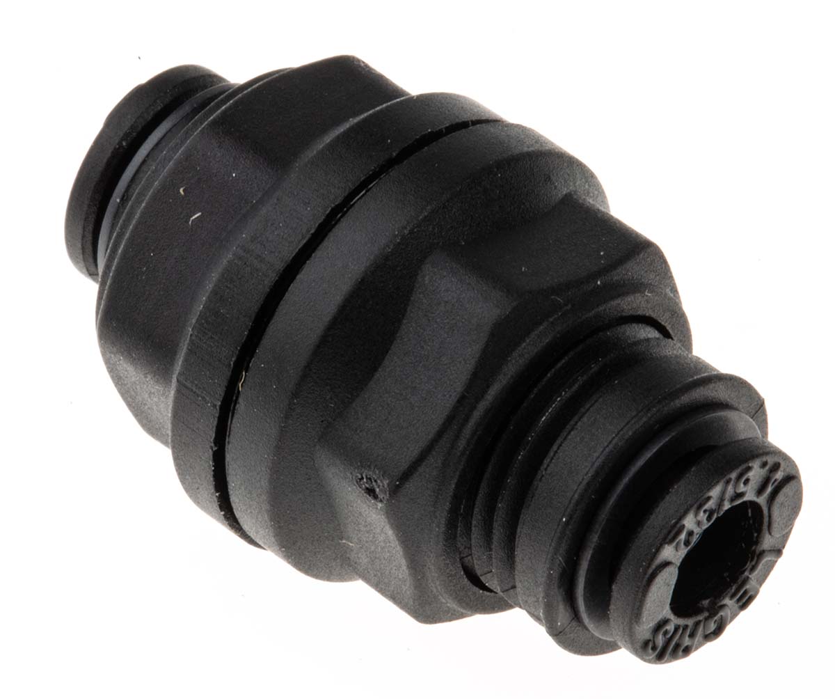 This is Pneumatic Bulkhead Tube-to-Tube Adapter Straight Connection A 4mm B 4mm manufactured by Legris. The manufacturer part number is 3116 04 00. A quality product with a nice nickel plated finish. Whereas, the minimum operating temperature of the product is -20°c. It features 20 bar maximum operating pressure. While the connector B is push in 4 mm. The connector A is push in 4 mm connector. The product has a tube-to-tube style. The product has a lf3000 manufacturer series. The pneumatic fitting is a bulkhead tube-to-tube adaptor. It has a maximum operating temperature of +80°c.