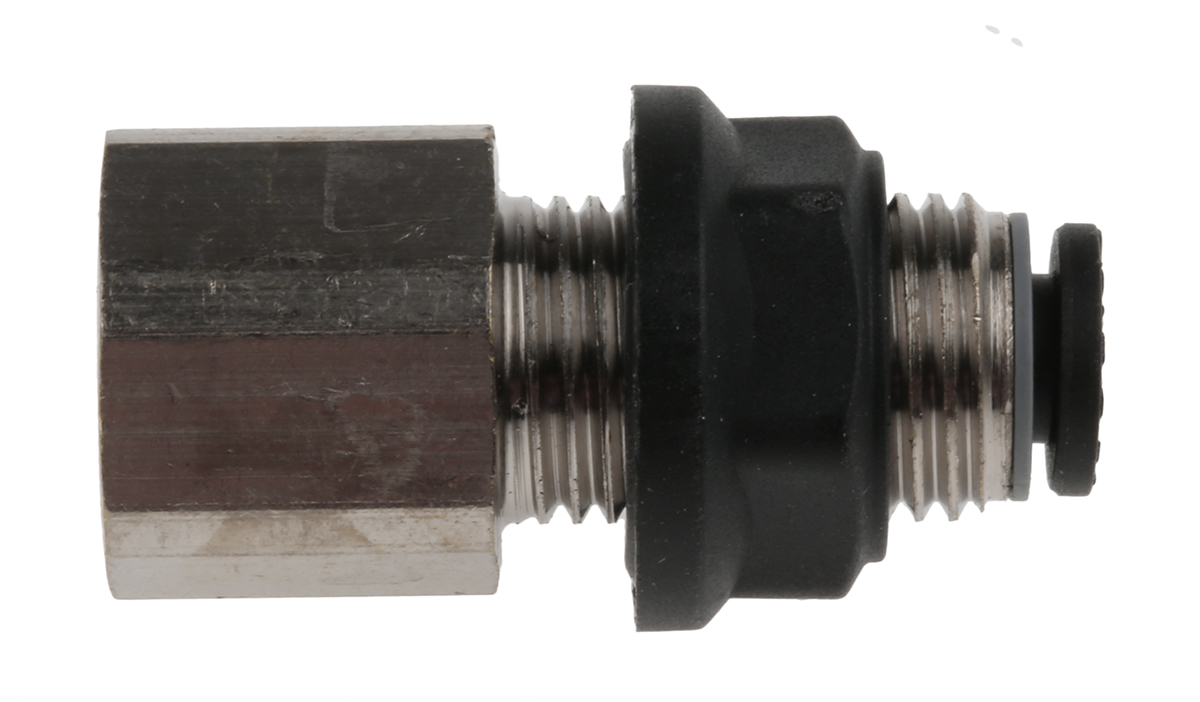 This is Pneumatic Bulkhead Threaded-to-Tube Adapter Push In 4 mm G 1/8 Female BSPPx4mm manufactured by Legris. The manufacturer part number is 3136 04 10. A quality product with a nice nickel plated finish. Whereas, the minimum operating temperature of the product is -20°c. It features 20 bar maximum operating pressure. Moreover, it has a standard 4 mm outlet port . While the connector B is push in 4 mm. The connector A is g 1/8 female connector. Moreover, its thread is made up of brass material . The threaded connection is g 1/8 female. The product has a threaded-to-tube style. The product's body is nicely designed from brass materials. The product has a lf3000 manufacturer series. The pneumatic fitting is a bulkhead threaded-to-tube adaptor. It has a maximum operating temperature of +80°c.