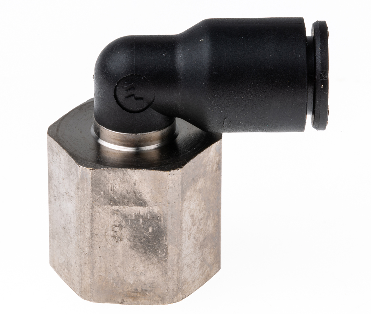 This is Pneumatic Elbow Threaded-to-Tube Adapter G 3/8 Female Push In 8 mm manufactured by Legris. The manufacturer part number is 3192 08 17. It has a 90° angle . It features 20 bar maximum operating pressure. The product is available in inline configuration. While the connector B is push in 8 mm. Whereas, the minimum operating temperature of the product is -20°c. The connector A is g 3/8 female connector. Moreover, its thread is made up of nickel plated brass material . The threaded connection is g 3/8 female. The product has a threaded-to-tube style. The product's body is nicely designed from glass reinforced nylon materials. The product has a lf3000 manufacturer series. The pneumatic fitting is a elbow threaded adaptor. It has a maximum operating temperature of +80°c. It includes a swivel connection .