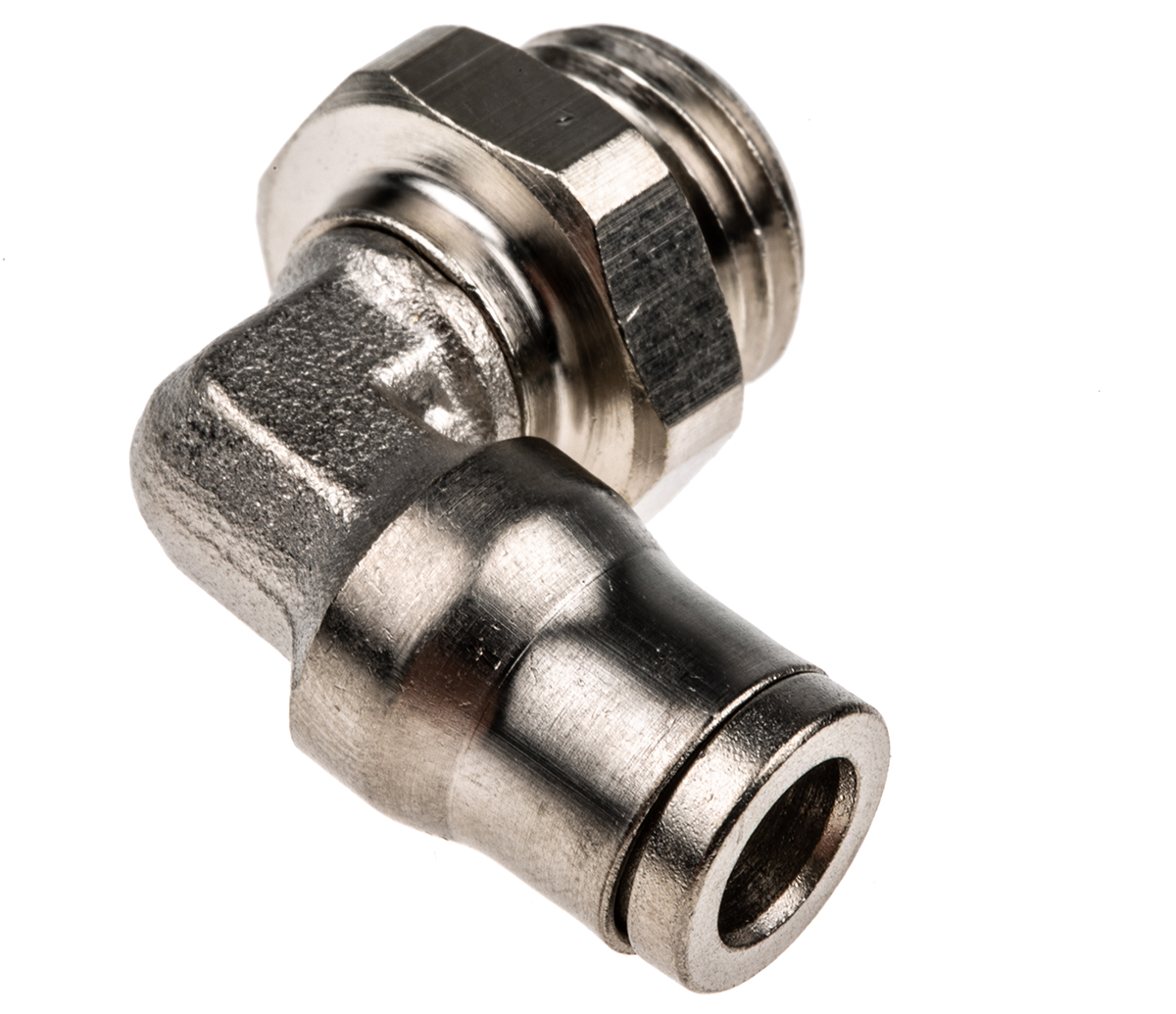 This is Male Stud Elbow G 1/4 Male Push In 6 mm manufactured by Legris. The manufacturer part number is 3699 06 13. It has a 90° angle . It features 20 bar maximum operating pressure. The product is available in inline configuration. While the connector B is push in 6 mm. Whereas, the minimum operating temperature of the product is -20°c. The connector A is g 1/4 male connector. Moreover, its thread is made up of nickel plated brass material . The threaded connection is g 1/4 male. The product has a threaded-to-tube style. The product's body is nicely designed from nickel plated brass materials. The product has a lf3600 manufacturer series. The pneumatic fitting is a elbow threaded adaptor. It has a maximum operating temperature of +120°c. It includes a swivel connection .