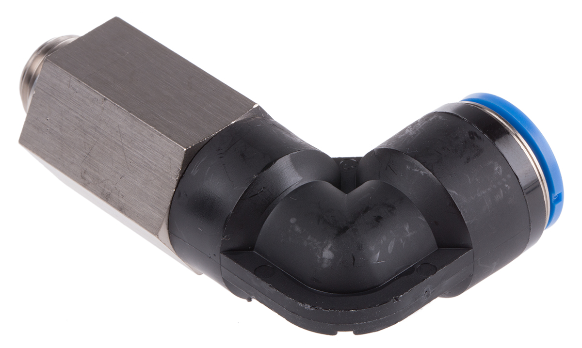 This is Pneumatic Elbow Threaded-to-Tube Adapter G 1/4 Male Push In 12 mm 12mm Tube Connection manufactured by Festo. The manufacturer part number is QSLL-G1/4-12. It is designed for food grade no . It has a 90° angle . It features 14 bar maximum operating pressure. The product is available in inline configuration. While the connector B is push in 12 mm. Moreover, its thread is made up of nickel plated brass material . Whereas, the minimum operating temperature of the product is -10°c. The connector A is g 1/4 male connector. While it has 132596 of model number. The threaded connection is g 1/4 male. The product has a threaded-to-tube style. The product's body is nicely designed from pbt materials. The product has a qs manufacturer series. It is resistant to chemical no . The pneumatic fitting is a elbow threaded adaptor. It has a maximum operating temperature of +80°c. It includes a swivel connection .