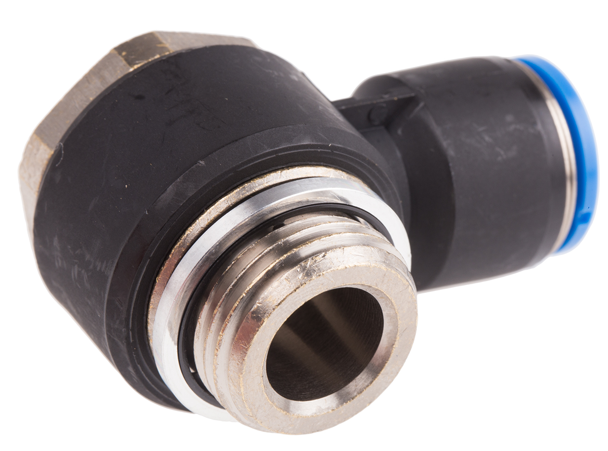 This is Pneumatic Elbow Threaded-to-Tube Adapter G 1/2 Male Push In 12 mm 12mm Tube Connection manufactured by Festo. The manufacturer part number is QSLV-G1/2-12. It is designed for food grade no . It has a 90° angle . It features 14 bar maximum operating pressure. The product is available in inline configuration. While the connector B is push in 12 mm. Moreover, its thread is made up of nickel plated brass material . Whereas, the minimum operating temperature of the product is -10°c. The connector A is g 1/2 male connector. While it has 186146 of model number. The threaded connection is g 1/2 male. The product has a threaded-to-tube style. The product's body is nicely designed from pbt materials. The product has a qs manufacturer series. It is resistant to chemical no . The pneumatic fitting is a elbow threaded adaptor. It has a maximum operating temperature of +80°c. It includes a swivel connection .