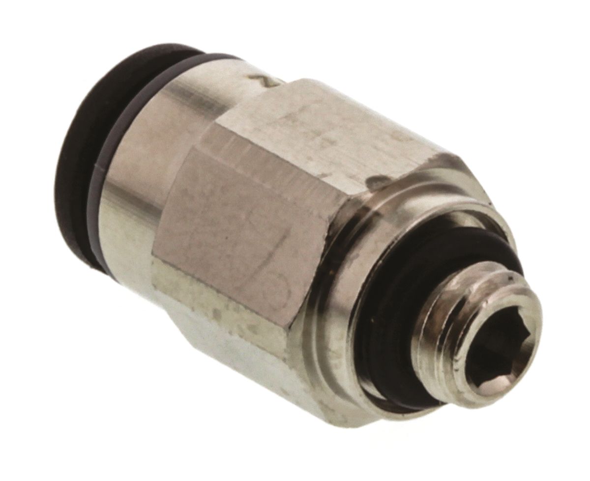This is Pneumatic Straight Threaded-to-Tube Adapter M5 x 0.8 Male Push In 4 mm manufactured by Legris. The manufacturer part number is 3101 04 19. It features 20 bar maximum operating pressure. The product is available in inline configuration. While the connector B is push in 4 mm. The connector A is m5 male connector. Moreover, its thread is made up of nickel plated brass material . The threaded connection is m5 x 0.8 male. The product has a threaded-to-tube style. The product's body is nicely designed from nickel plated brass materials. The product has a lf3000 manufacturer series. The pneumatic fitting is a straight threaded adaptor. It has a maximum operating temperature of +80°c. Whereas, the minimum operating temperature of the product is -20°c.