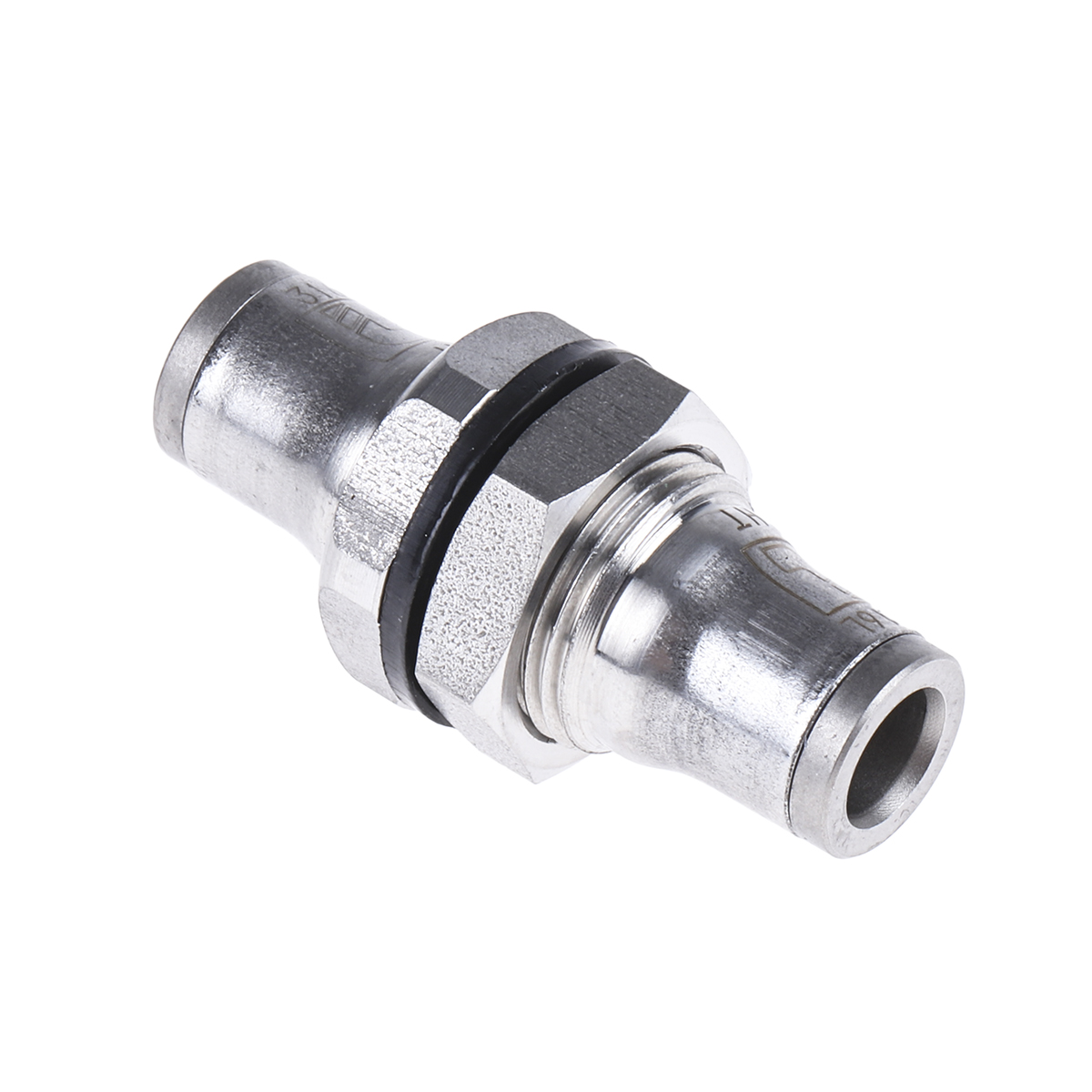 This is Pneumatic Bulkhead Tube-to-Tube Adapter Straight Push In 6 mm to Push In 6 mm manufactured by Legris. The manufacturer part number is 3816 06 00. Whereas, the minimum operating temperature of the product is -15°c. It features 20 bar maximum operating pressure. While the connector B is push in 6 mm. The connector A is push in 6 mm connector. The product has a tube-to-tube style. The product has a lf3800 manufacturer series. The pneumatic fitting is a bulkhead tube-to-tube adaptor. It has a maximum operating temperature of +110°c.